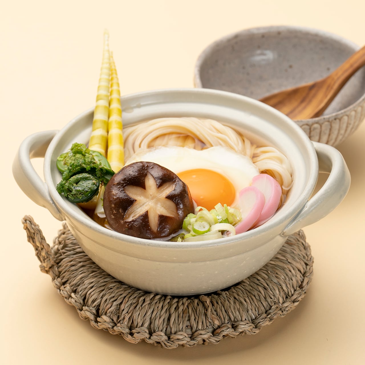 Please feel the way udon slide down your throat. Thick udon will keep its elasticity even if it is stewed.